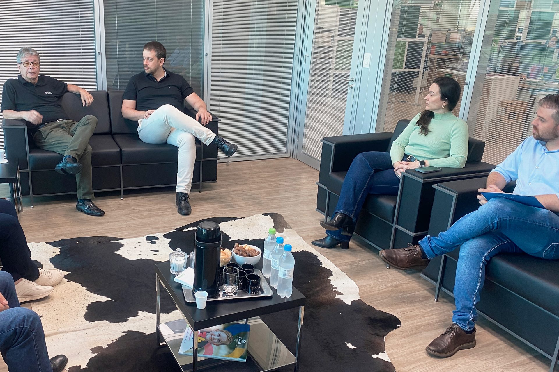 Além de Berbigier, Zagonel e Gravina, participaram do encontro a analista de comunicação e marketing da Sicredi Integração RS/MG Laura Carvalho e Elaine Warken e Antonio Juarez da Silva, da Acil.